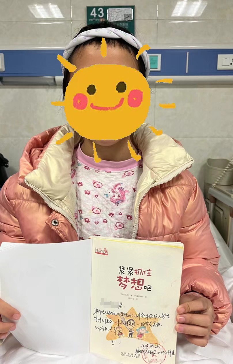 经过团队的精心治疗及护理,小雨于1月27日康复出院。出院当天,小雨和家人们来到护士站,其母亲饱含泪水深情地说:“感谢黔南州人民医院,感谢咱们医护团队,这段时间以来对我女儿的关心、鼓励。特别是护士姐姐们,在我最困难、为女儿疾病担忧、心力交瘁最无助的时候,是你们帮助我,开导我,给我信心,真的非常非常感动”。小雨还特别表达了“回去后一定会好好学习,长大后像白衣天使一样,做对别人、对社会有意义的事。谢谢叔叔阿姨们住院期间对我无微不至的照顾,你们用爱心、耐心和亲切的微笑鼓舞着我,让我更加勇敢面对疾痛,你们永远是我心中的天使!”一句句朴实的话语表露出一个10岁儿童在面对身体疾病那种坚不可摧的意志力和对医护人员的感谢。