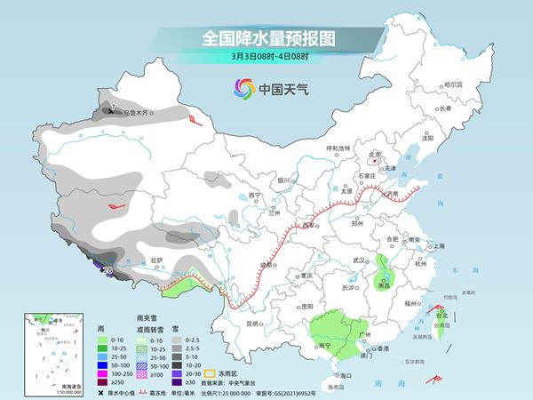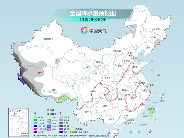 周末两天(3月2日至3日),我国中东部大部地区雨水暂歇,南方多地有望迎来久违的阳光,气温大幅回升。不过,雨雪此消彼长,西藏西部、新疆西南部等地今明两天强降雪在线,尤其是西藏西南部局地或现特大暴雪,需注意防雪防灾。