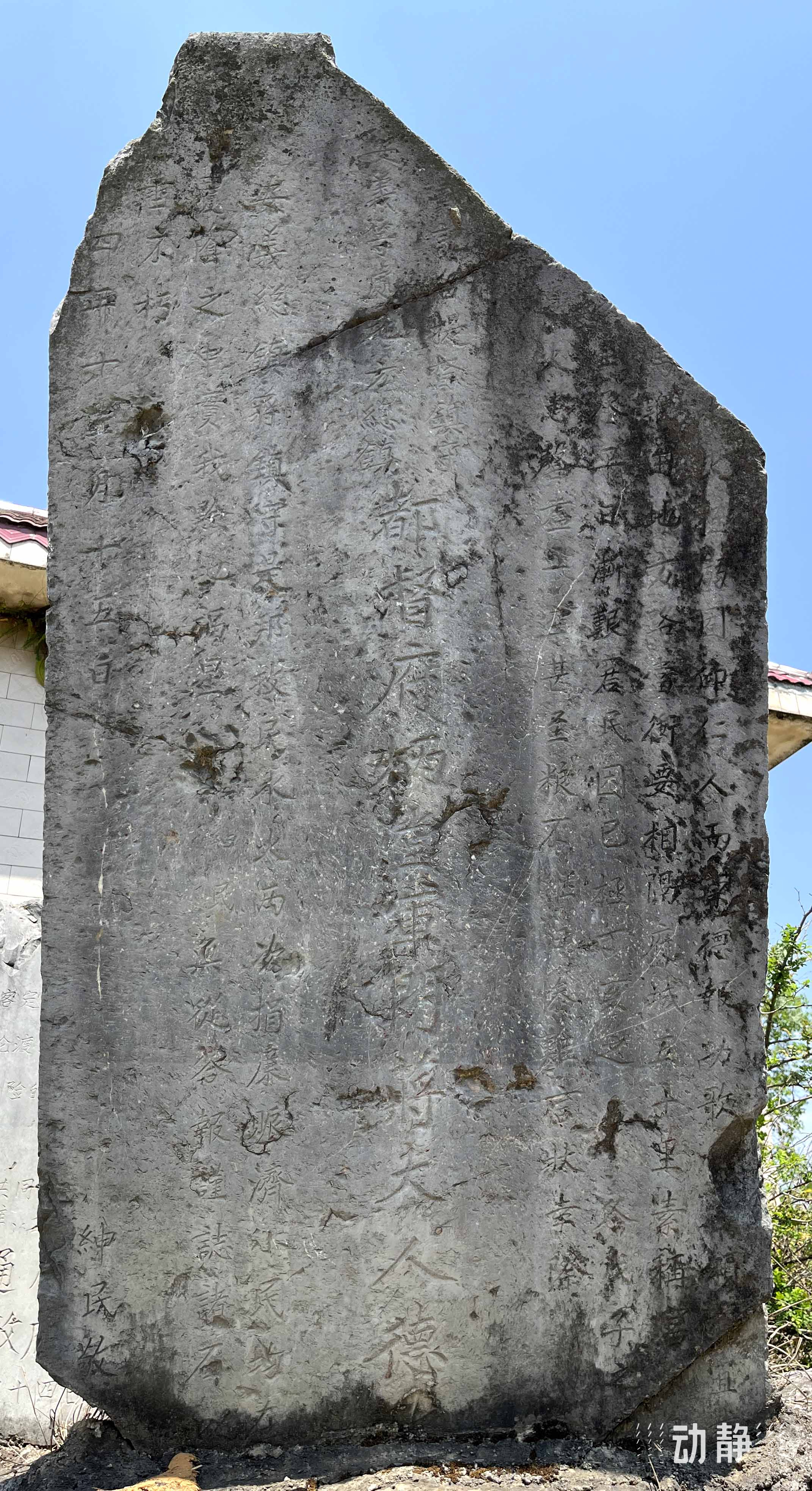 另外,马鞭田还保存一通安义镇总兵蒋宗汉德政碑。碑为青石质,有局部残损,高174厘米,宽89厘米。碑正中书题:“(赏)戴,记名提督,镇守安义等处地方总镇,都督府炳堂军门蒋大人德政”。碑文记载:“马鞭田地方,路当冲要,相隔府城五十里(马鞭田今属安龙德卧镇,距离县城直线距离18公里),素称富实”,历来比较富庶,老百姓的日子也“承平”安稳。但再好的地方也怕受灾,一场水灾之后,“日渐艰窘,民困已极”。祸不单行,马鞭田“丁亥(1887年)之(季)冬,戊子(1888年)之(孟)春,迭遭火患,罄尽一空。甚至粮不继日,惨难言状。”“幸际”在此危难之时,“安义总镇蒋(宗汉),镇守是邦,救民于水火,两次捐廉(银)救助,小民均在覆荫(庇护)之中,实我黔地福星”。碑文最后表示感谢,马鞭田“绅民,无从答报,谨志诸石,以垂不朽”。落款:“(光绪)十四年十二月十五日,绅民敬(立)”。