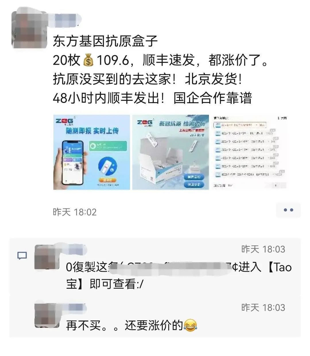 近日,新冠病毒抗原检测试剂、连花清瘟等涉疫物资库存紧俏,不少网友通过药店、医院、网络平台等多种渠道准备相关物资,这使得一些商家或不法分子动起了歪脑筋,部分商家趁机抬高物价,还有一些人私自贩卖涉疫医疗产品。