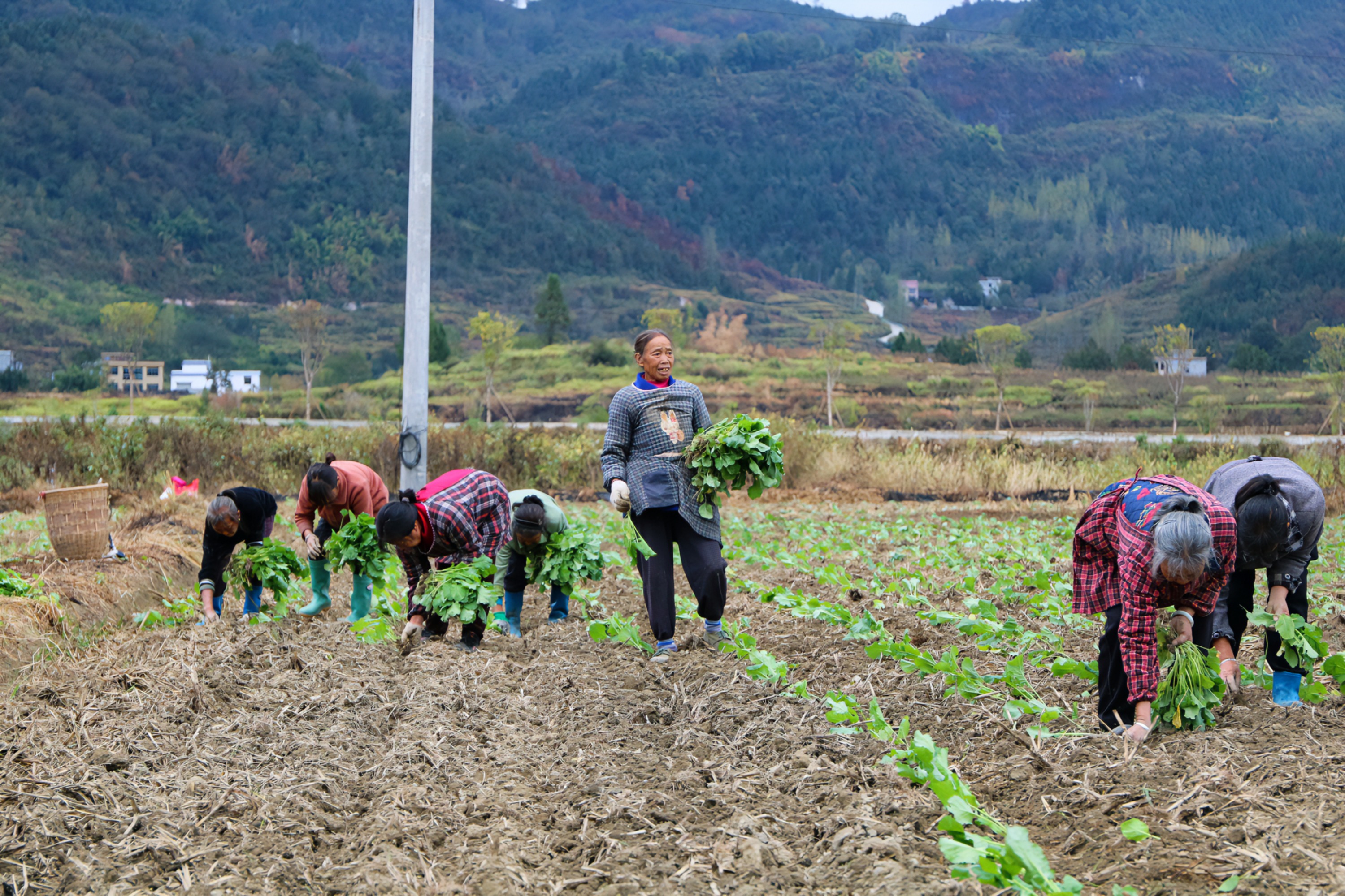 时下,正值秋冬种的好时节。连日来,在松桃苗族自治县大路镇长征村粮油高产示范基地,20余名群众忙着起苗、翻土、开沟,随处可见油菜移栽的忙碌景象。