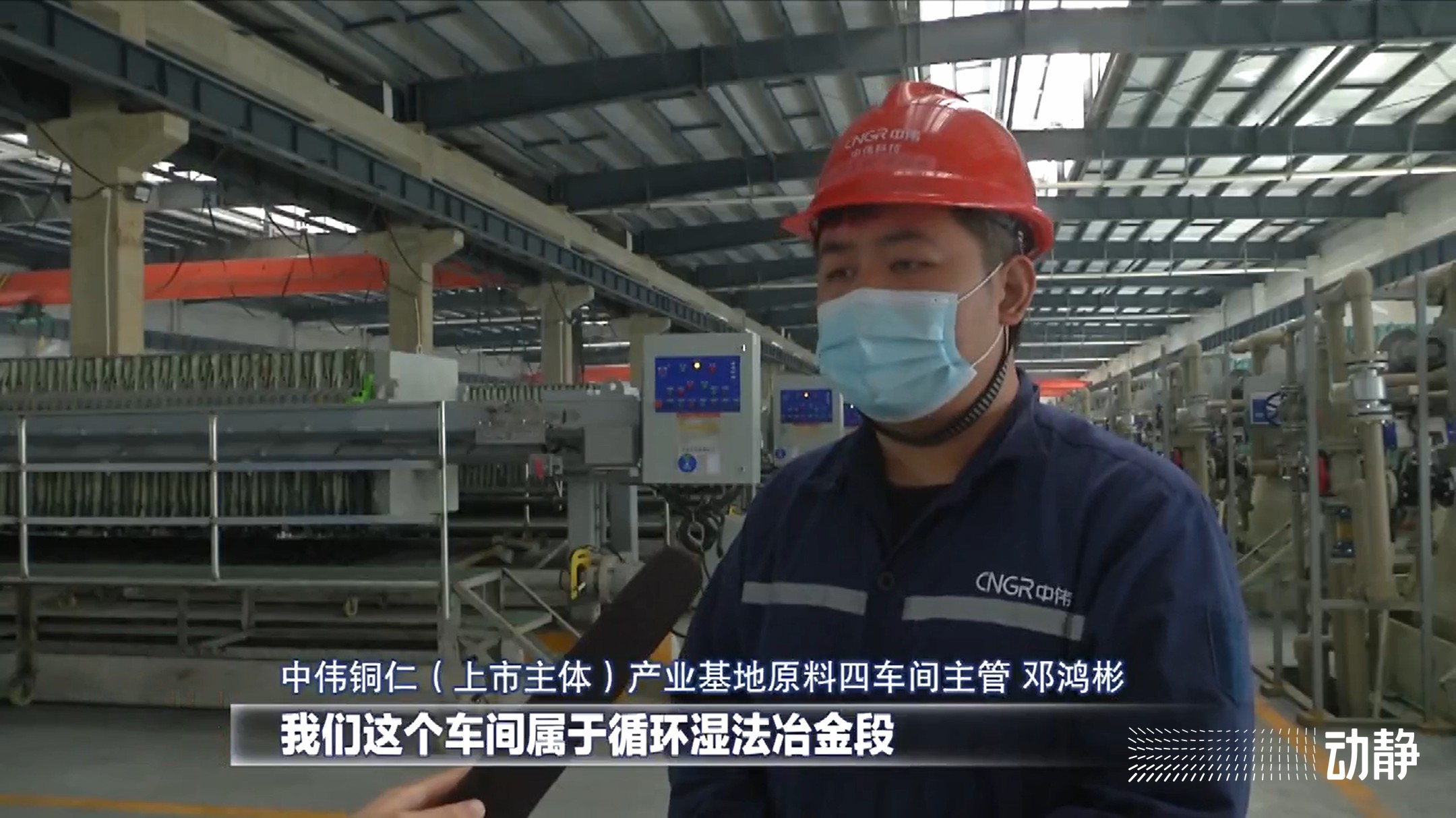 中伟铜仁(上市主体)产业基地原料四车间主管邓鸿彬说,他们这个车间属于循环湿法冶金段,在车间里面,主要是由浸出,除铁,和洗渣三个大的部分组成,他们的产品最终成果的话会产生的是三元溶液,在浸出段结束之后,会输往萃取车间。