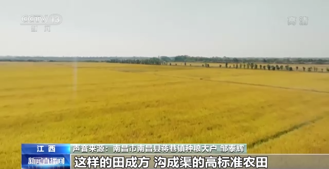 从黄河之滨到长江两岸,收获的喜悦,传遍大江南北。江西南昌县蒋巷镇3000多亩中稻现在已经成熟,今年长江流域遭遇了前所未有的旱情,但这里稻田里的稻穗颗粒饱满。这又是怎么实现的呢?来听一听当地种粮大户邹泰辉的讲述。