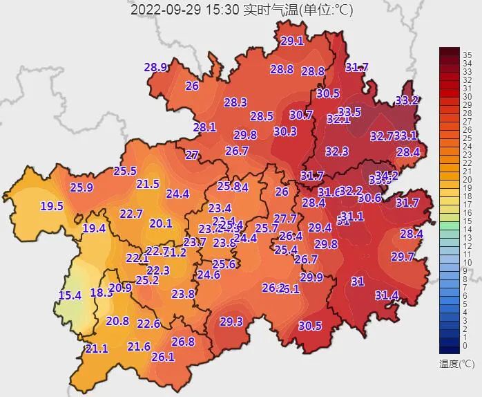 铜仁市、黔东南州部分县市午后有35℃以上高温天气