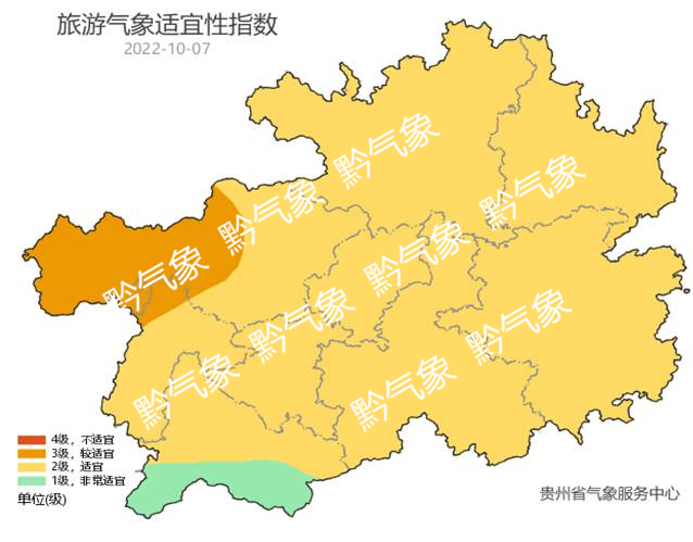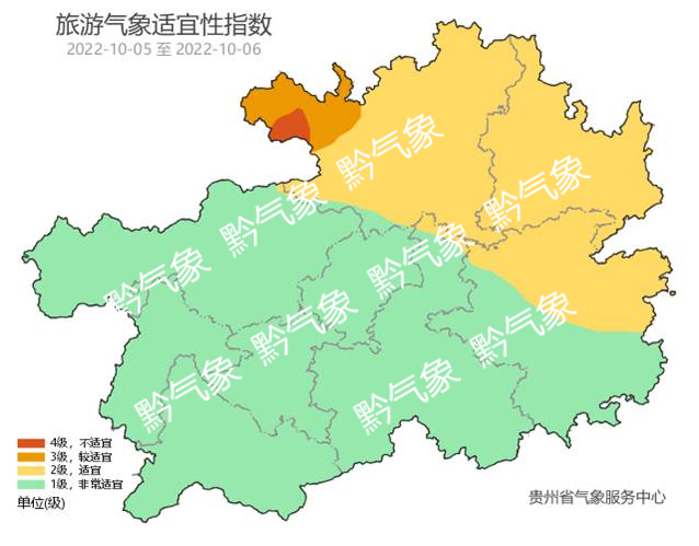 10月1~6日:省的东部和北部地区多云到晴,最低气温16~20℃,最高气温23~37℃,其中,铜仁市、黔东南州有35℃以上高温天气;西部、南部地区阴天间多云有分散阵雨或雷雨。省内大部分地区午后有4-6级偏南风,局地瞬时大风超过6级,东部地区城镇和森林火险气象等级高。