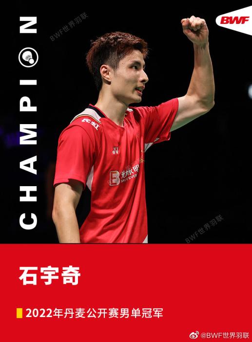 2022丹麦羽毛球公开赛男单决赛于当地时间23日进行。经过三局鏖战,中国选手石宇奇以21:18、16:21、21:12战胜马来西亚名将李梓嘉。获得男单冠军的同时,他也就此打破了自己长达三年的“冠军荒”。