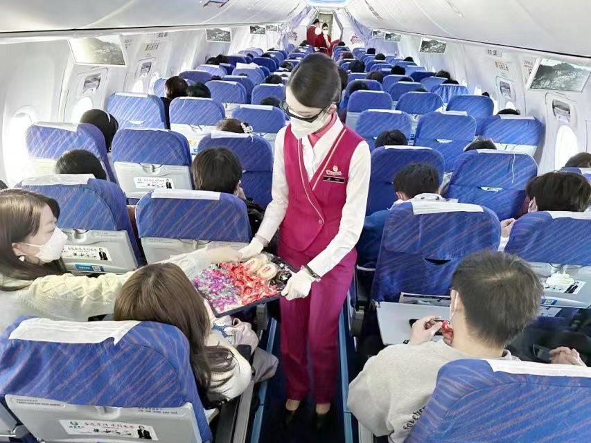 辞岁春风近,佳节慰客心。新年来临,南航贵州公司积极结合传统节日文化,于元旦期间开展一系列“喜迎新春”特色空地活动。乘务组身着“中国红”古典旗袍,在飞机上为旅客热情送上暖心热茶、甜蜜糖果、飞机抱枕等精美礼品,同时邀请旅客一起在蓝天中写下、录下新年祝福;在南航明珠休息室,工作人员还为旅客准备了芝麻、花生汤圆等不同口味的甜品,帮助舒缓旅途疲惫。据了解,此类特色活动还将在春节期间部分南航航班上开展,为旅客带来充满“年味”的美好出行体验。
