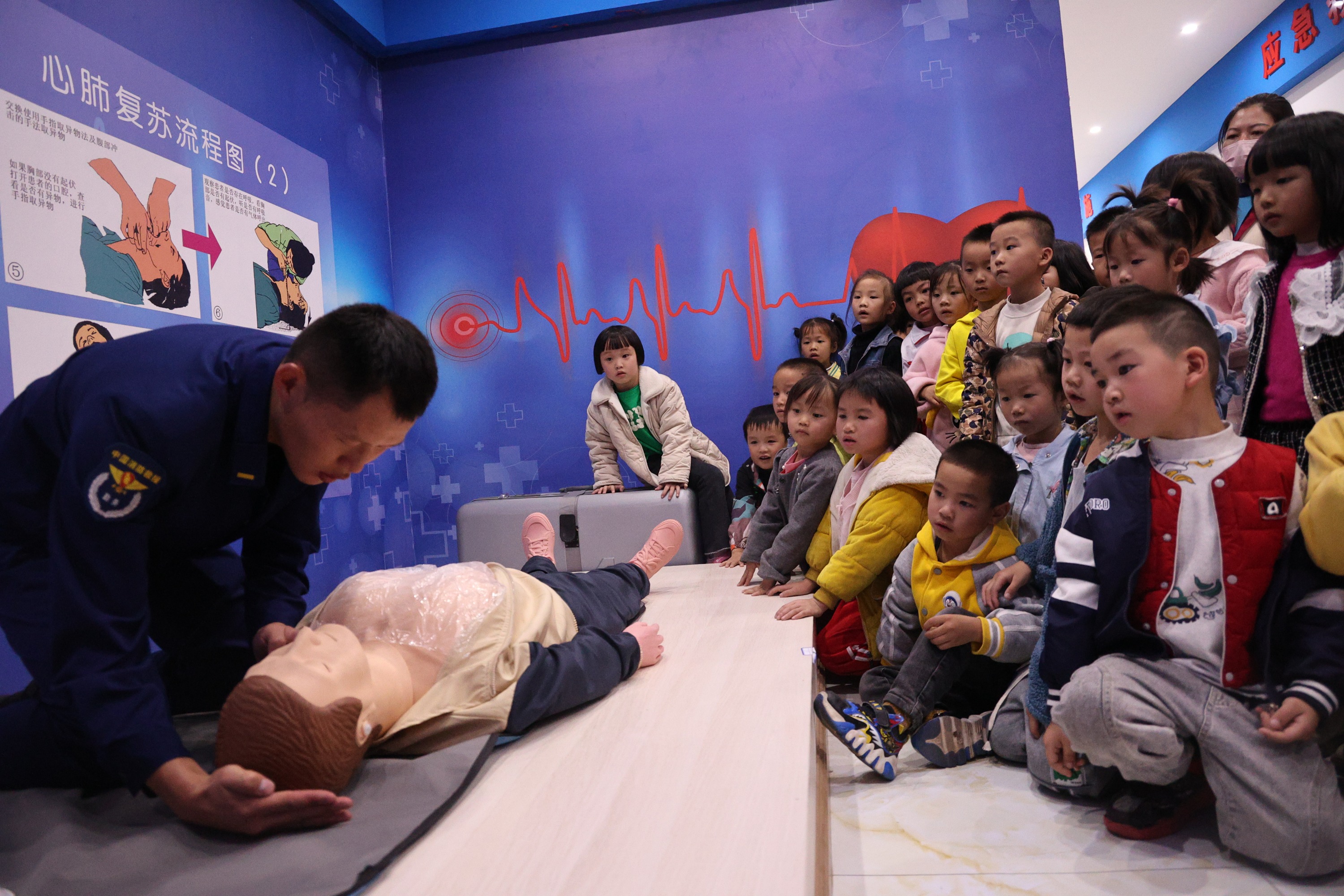 消防员为幼儿园的孩子们讲解急救知识 吴昌前 摄