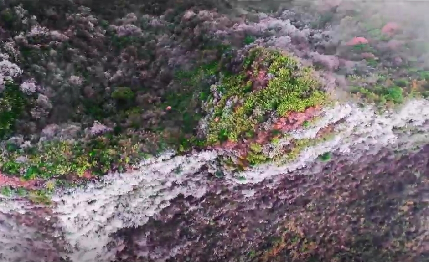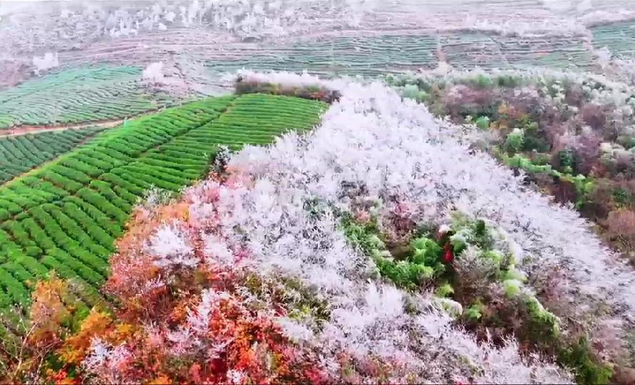 漫山遍野,银装素裹,每一棵树都被晶莹的雪凇轻抚,披上了梦幻的白纱,仿佛“冰雪奇缘”的童话世界一般。阳光下,冰晶闪烁,宛如万千星辰落入凡间,璀璨夺目。