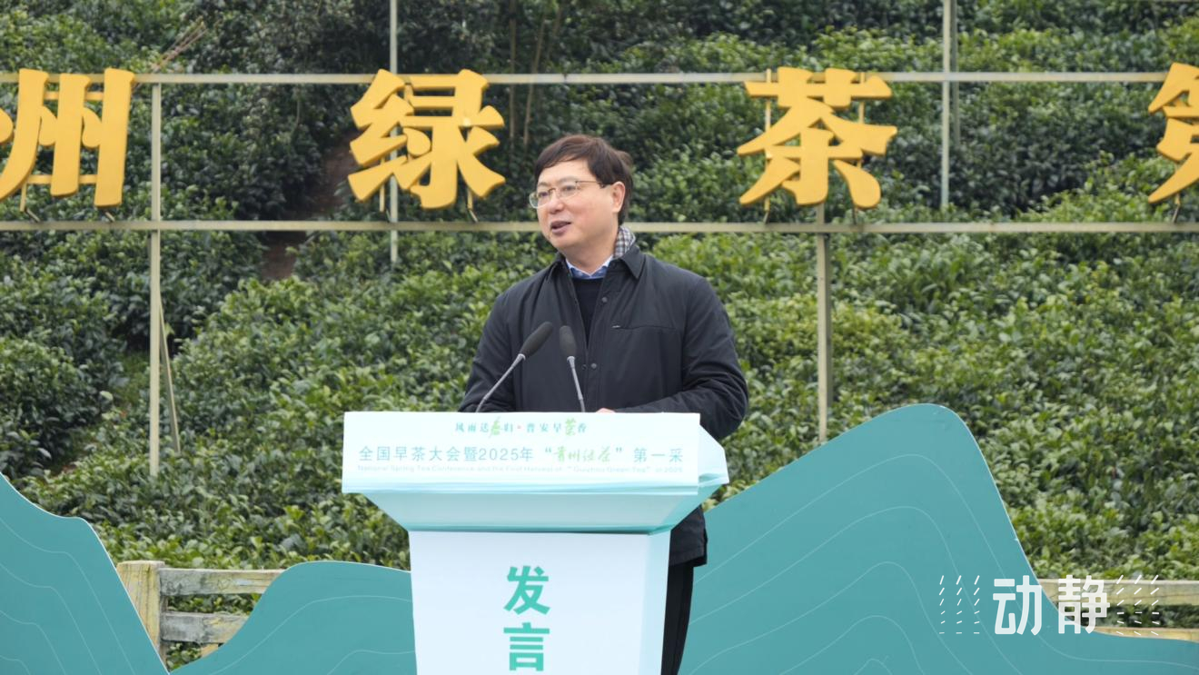 今天(1月1日),全国早茶大会暨2025年“贵州绿茶”第一采活动在普安县举行。中国茶叶流通协会荣誉会长、中茶协抹茶委主任委员、浙江茶博士生物科技有限公司董事长毛立民作主旨演讲。他说道:“唐代诗人白居易在《琵琶行》中写道‘商人重利轻别离,前月浮梁买茶去。’如果他穿越到今天,应当写作‘前月普安买茶去’。”