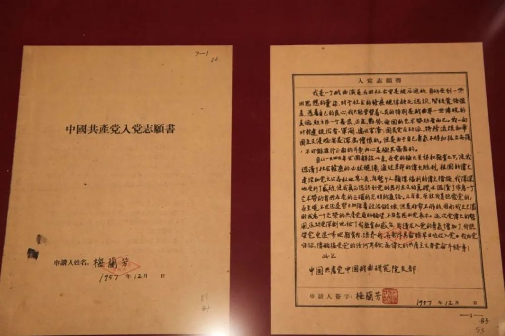 在中国国家版本馆(总馆)内,两份业已泛黄的入党志愿书总能引起参观者放慢脚步、驻足细看。这两份志愿书分别由已故著名京剧表演艺术家梅兰芳与程砚秋于20世纪50年代写就,其上娟秀工整的字迹、深沉炽热的情感,无不表达着两位艺术家对党组织的无限向往、对社会主义建设的无限憧憬。