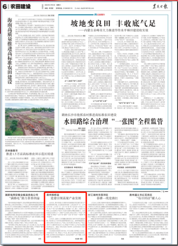 近年来,贵州省遵义市桐梓县坡渡镇坚持党建引领与产业发展同频共振,在全镇范围内推广以党支部为“头”、合作社为“线”、公司为“点”、农户为“面”的“党支部+合作社+公司+农户”的产业发展新模式,形成集产、贮、销于一体的产业体系,让红高粱生产成为了促进当地群众增收的新路子。在各村级党支部努力下,该镇产业发展之路也实现了“四变”,即“荒坡”变“耕地”“玉米”变“高粱”“无机”变“有机”“不愿种”变“抢着种”。