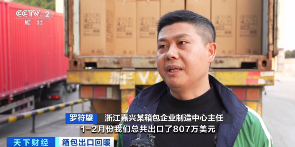 浙江嘉兴某箱包企业制造中心主任 罗符望:1—2月份,我们总共出口了807万美元,同比增长了67%左右。目前订单也比较饱和,每天出集装箱在20个左右,高峰期最多可以出到70个集装箱。