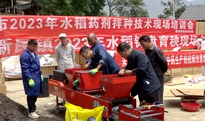 盘州市新民镇农业服务中心负责人姚丹说:“2023年新民镇总体实施钵盘育秧任务数是2500亩,新技术的推广为我们节省了劳动力,通过社会化集中服务,统一育苗,在极旱天气状况下,也能把春耕生产按时间、按质量抓下去。