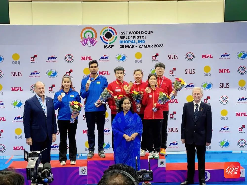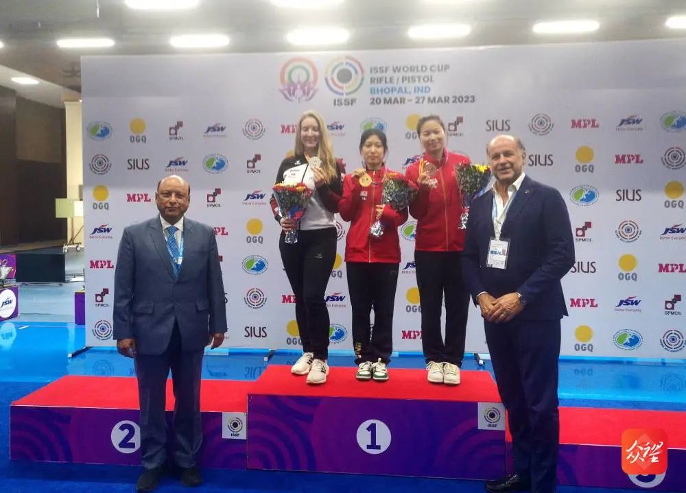 本次射击世界杯印度站,钱微发挥出色,加上3月22日获得的女子10米气手枪个人铜牌,她在本次比赛收获了1金1铜的好成绩,并再次站上世界冠军领奖台。