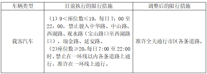 一、取消载客汽车和多用途货车(皮卡车)在市区的所有限行措施,即上述车辆准许全天通行市区各条道路。
