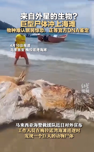 4月10日报道,事发马来西亚梅拉诺湾海滩。马来西亚海警救援队近日对外宣布,工作人员在梅拉诺湾海滩巡逻时发现一具巨大的动物尸体。当地居民称这个“巨大的肉球”散发恶心的气味,让人感到惊悚,肉眼很难辨其物种,需要等待官方DNA测试鉴定。
