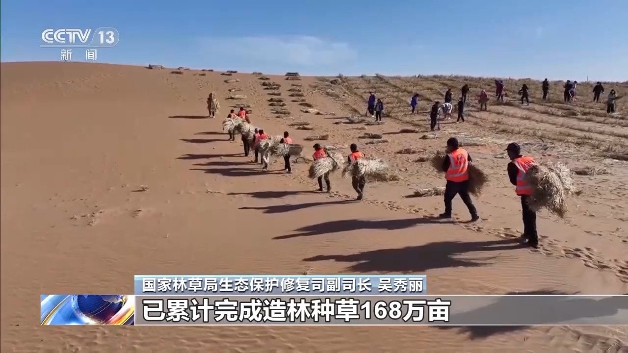 国家林草局生态保护修复司副司长 吴秀丽:今年的重中之重是打好三北工程三大标志性战役,目前,三北工程区各省份已累计完成造林种草168万亩,工程固沙58万亩,开局势头良好。
