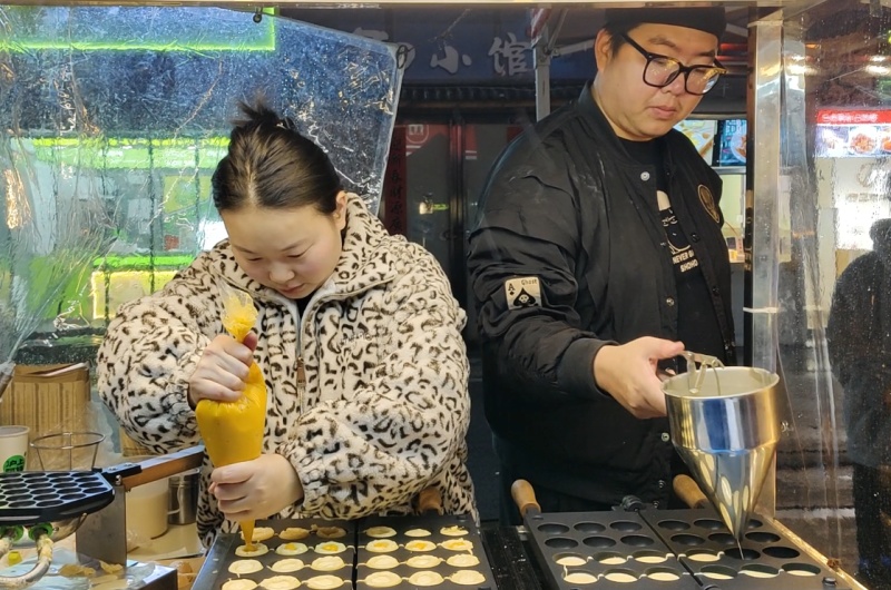 夫妻俩经营起“无声爆浆鸡蛋仔”