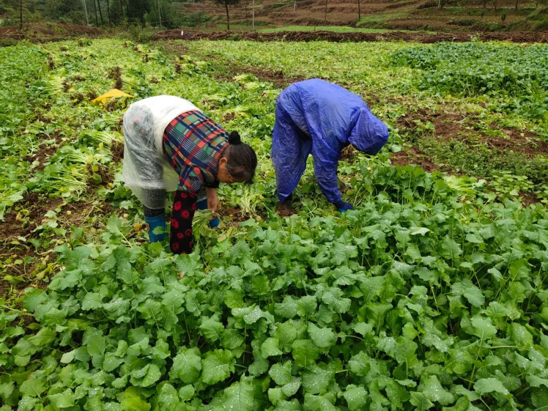 在蒙蒙细雨中,记者走进木瓜镇西山村油菜种植示范点和木瓜社区羊角菜种植点,看到农户们正在田间地头有序地进行起苗、松土、打窝、匀苗、栽种等作业,一片繁忙景象。