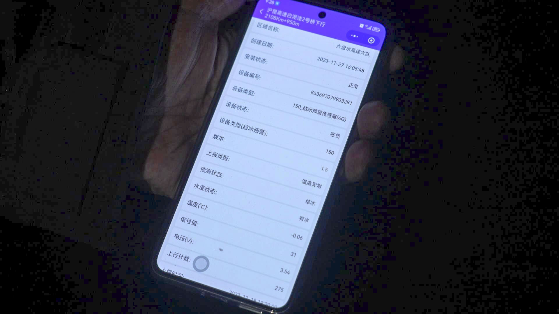 沪昆高速盘州段桥梁多,易凝冻多雾路段长达20多公里,占了整个沪昆高速盘州段的三分之一。为更精准高效实时监测路面凝冻情况,沪昆高速盘州段一路三方在易凝冻路段和桥面安装了16台道路结冰预警传感器,运用贵州交通视频云,实时监看道路凝冻情况和路面情况,实现线上线下联动,深度排查预警,及时发现问题,提前做好各项应对措施。