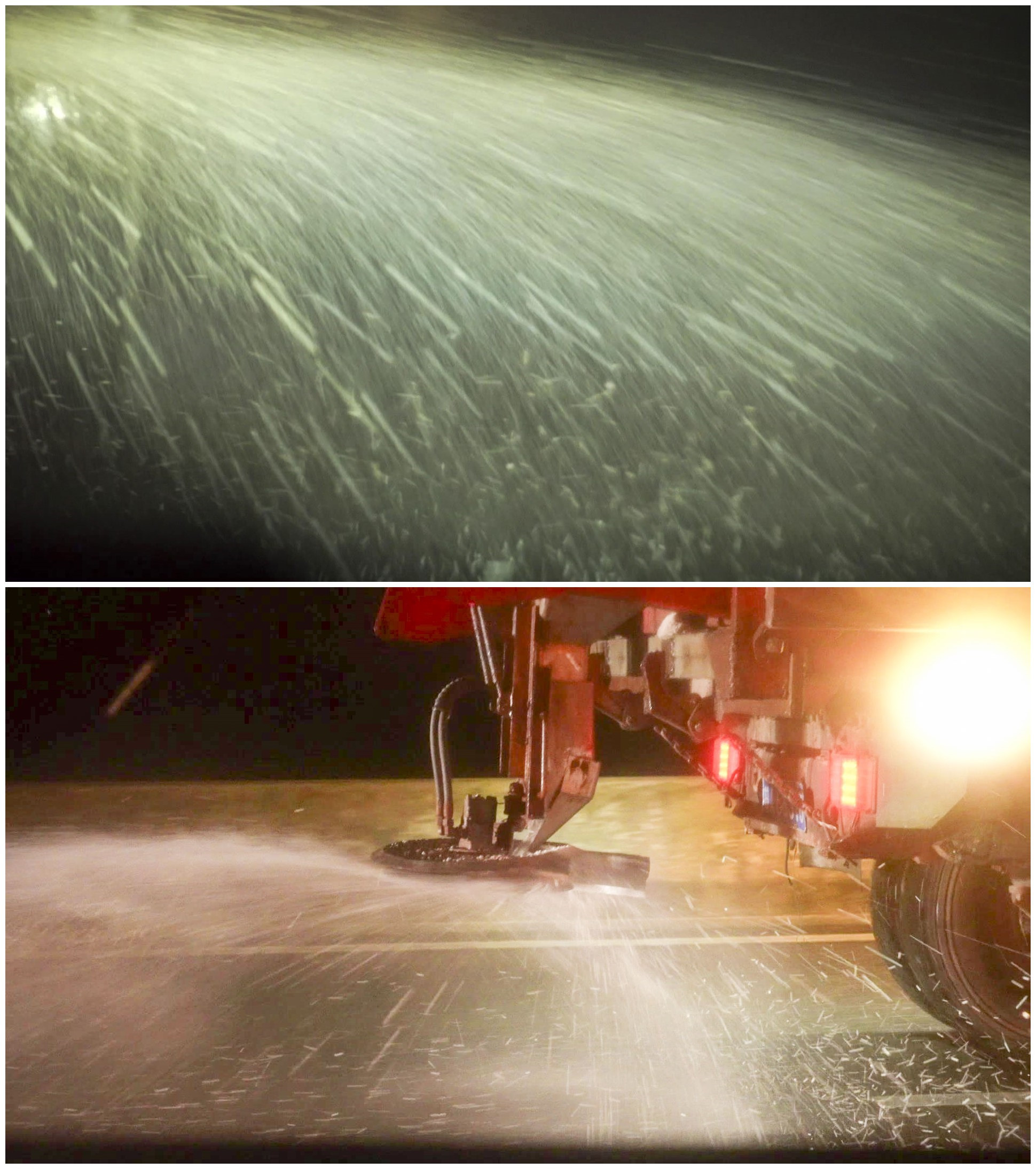 今年,沪昆高速盘州段首次引进4台融雪剂撒盐机进行道路除冰工作。相较于以往每辆车8名工人进行人工撒工业盐的除冰方式相比,撒盐机每辆车仅需2名工人作业,大大减少了人力成本,同时,在撒盐机动力系统的驱动下,能迅速均匀的将环保型融雪剂散播在道路上,加上融雪剂的吸水功能,有助于更快除冰,恢复道路通行。