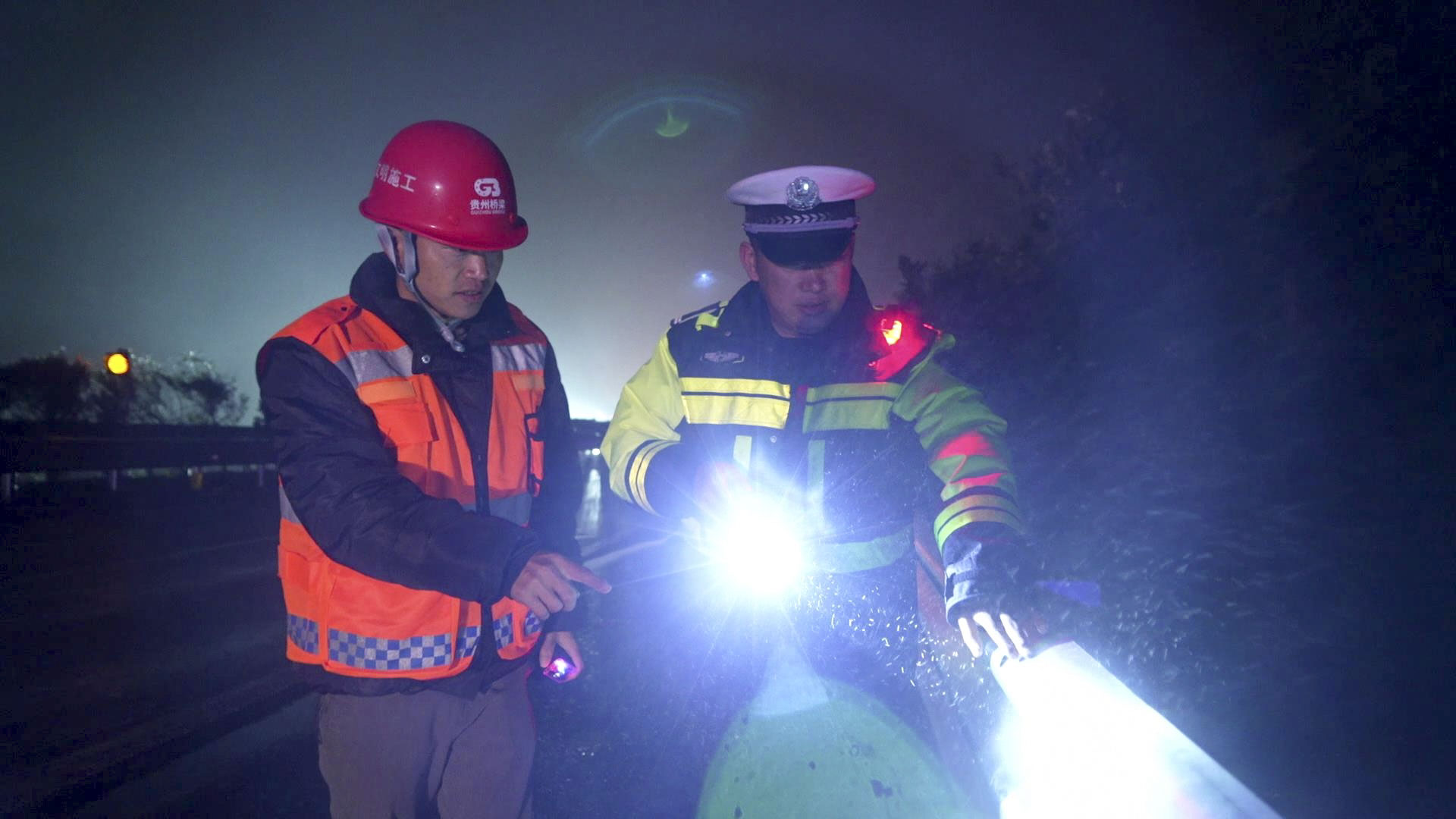 “针对近期出现的低温凝冻恶劣天气,六盘水市公安交通管理局高速大队主动联合辖区一路三方对盘州市境内沪昆高速公路采取错时巡查、路巡加网巡,提前储备充足的抗凝冻物资。截至目前,已经连续三天开展预防性撒盐除冰工作,下一步工作中,我们将持续关注天气变化情况,闻令而动,采取有力措施,确保辖区交通安全形势平稳,为广大人民群众出行提供一个安全文明有序的交通环境。”陆川说道。