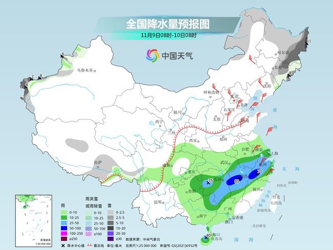 (11月8日),新一股冷空气上线,东北地区雨雪再度增多,南方开启频繁阴雨模式。冷空气活跃,除了带来降水,也让中东部地区的气温持续走低,预计下周初最低气温0℃线将抵达黄淮南部一带。