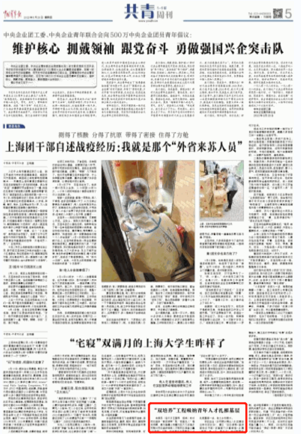今天(5月26日),《中国青年报》刊发新闻《“双培养”工程吸纳青年人才扎根基层 》。