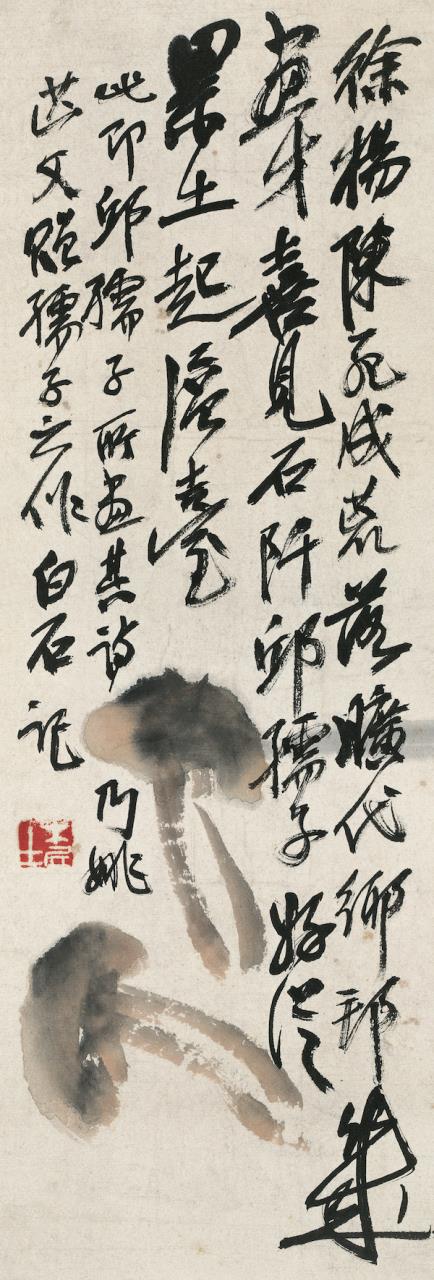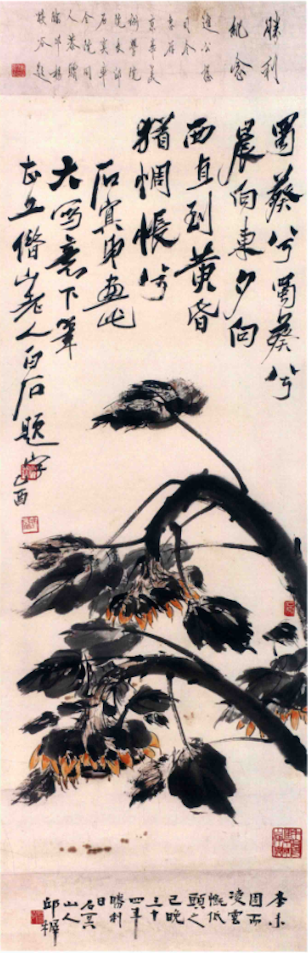 齐白石对邱石冥的画高度赞赏,曾提笔为他的多幅作品题字,如《葵花》《丝瓜》等。