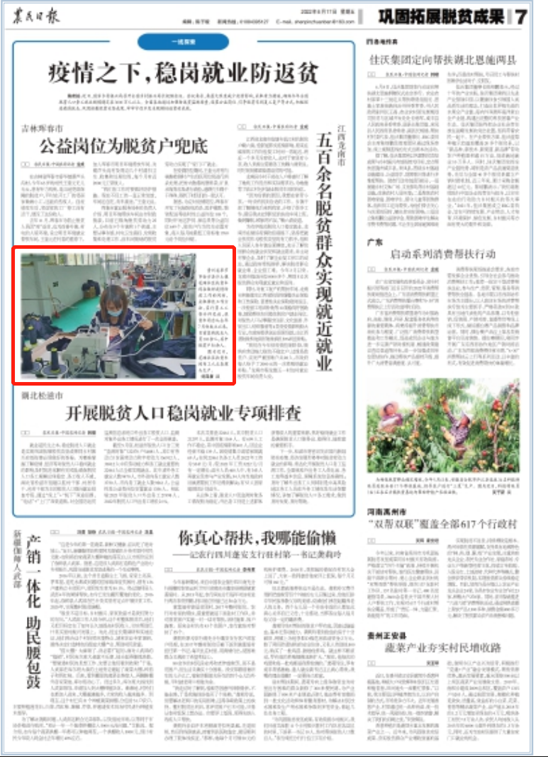 贵州省毕节市金沙县沙土镇花滩社区扶贫车间在做好疫情防控工作的同时,采取弹性工作方法,实行员工工资计件发放,扶贫车间自从去年7月份成立以来,目前容纳就业人员100余人,其中脱贫户50余人。