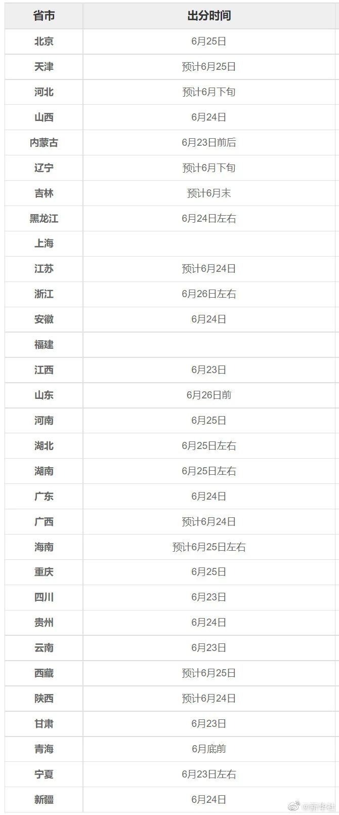 2022年高考成绩公布时间