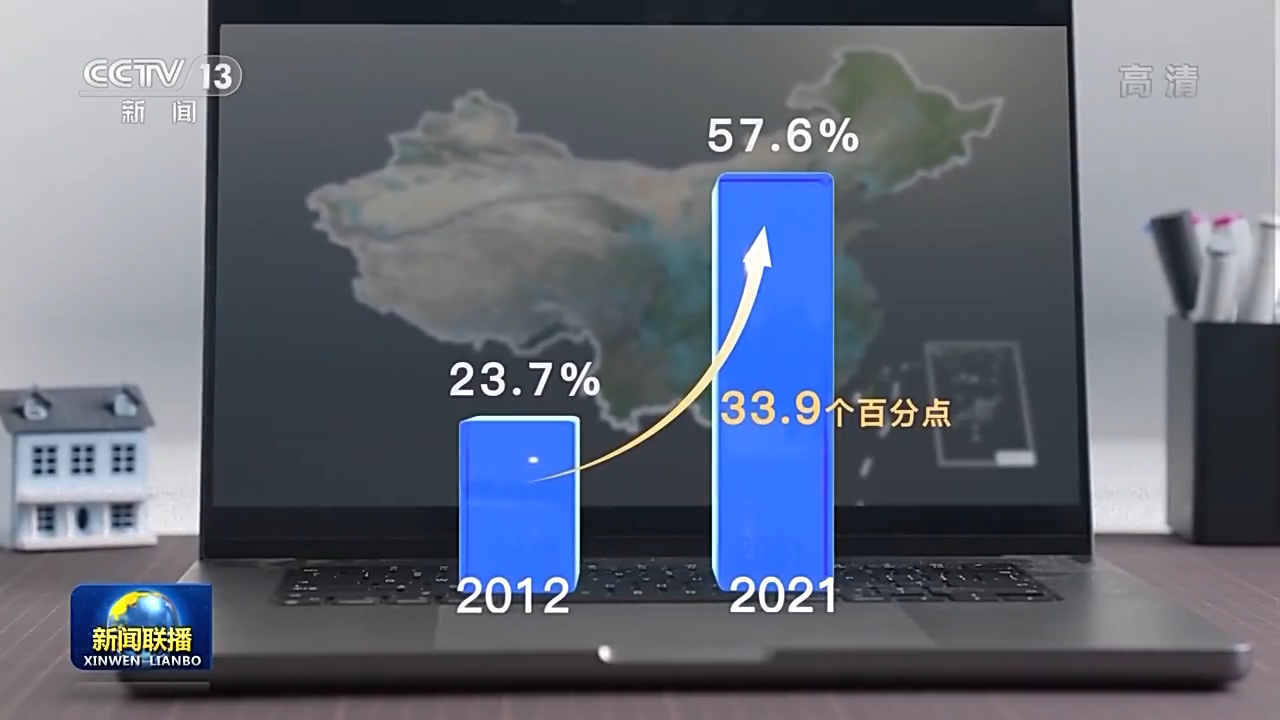 2021年,我国农村互联网普及率达到了57.6%,比2012年提升33.9个百分点;同样是这十年,全国接入宽带的农村家庭,从4076万户增长到了15770万户,增长287%,农村光纤平均下载速率明显提高,农村实现了与城市“同网同速”。