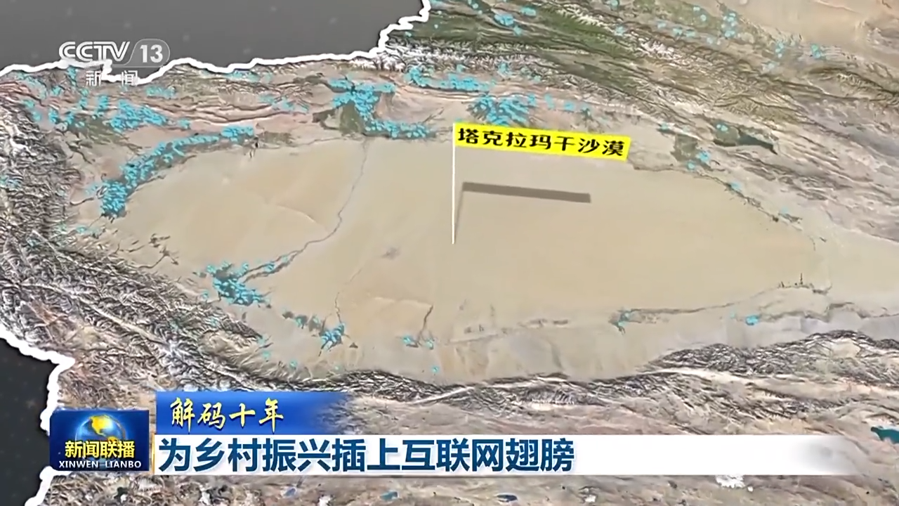 在这张地形图上,每个光点代表一个光纤宽带通达的偏远行政村。在全国最大的沙漠塔克拉玛干沙漠,沙漠周边镶嵌着一簇簇的光点,在平均海拔4000米以上的横断山脉,光点闪现在群山峻岭间。只有200多村民的西藏玉麦村,也没有被光点遗忘。