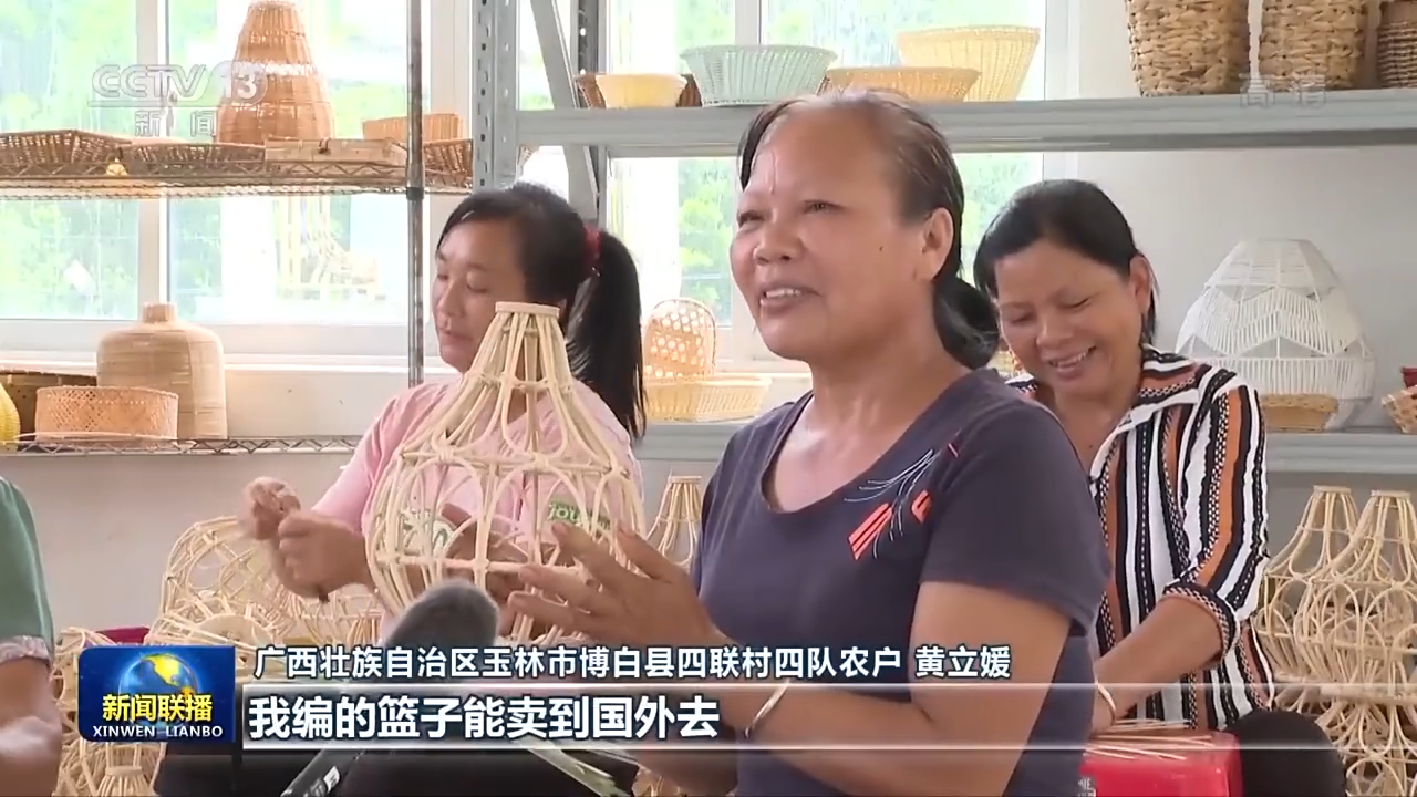 广西壮族自治区玉林市博白县四联村四队农户黄立媛:我编的篮子能卖到国外去,做梦都想不到。