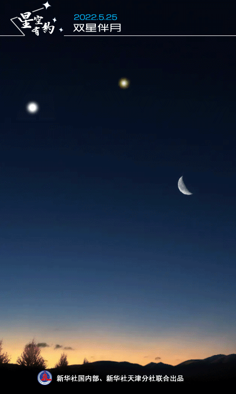 中国天文学会会员、天津市天文学会理事杨婧介绍,4月和5月,这五颗行星在黎明前的东南方天空中穿行,相互“靠近”的情况时有发生。5月下旬,月亮运行至黎明时分的天空,与行星依次相会。25日凌晨,农历四月二十五的残月与木星和火星近距离相伴。
