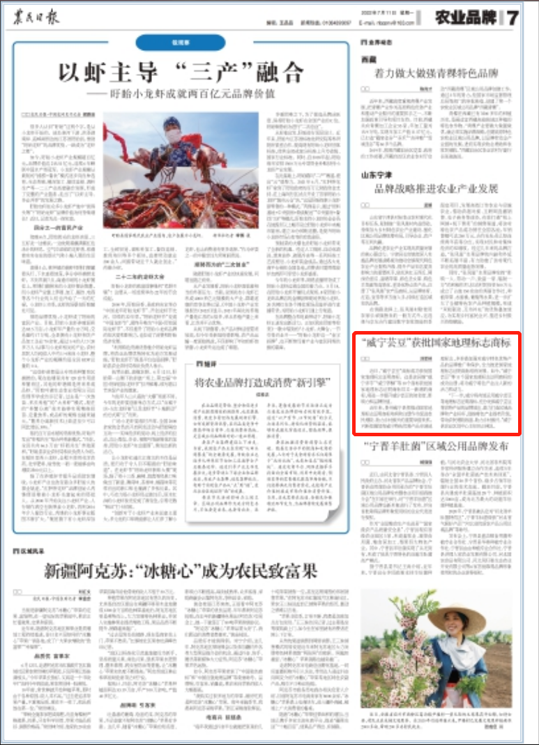 今天(7月11日),《农民日报》刊发新闻《“威宁芸豆”获批国家地理标志商标》。