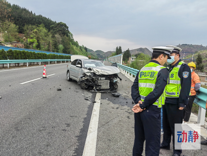 4月5日,毕节市公安交通管理局高速五大队一中队接报警称在都香高速大湾收费站附近发生交通事故,车辆损毁严重。接警情后,高速五大队一中队立即调动路面巡逻力量前去出警处理。