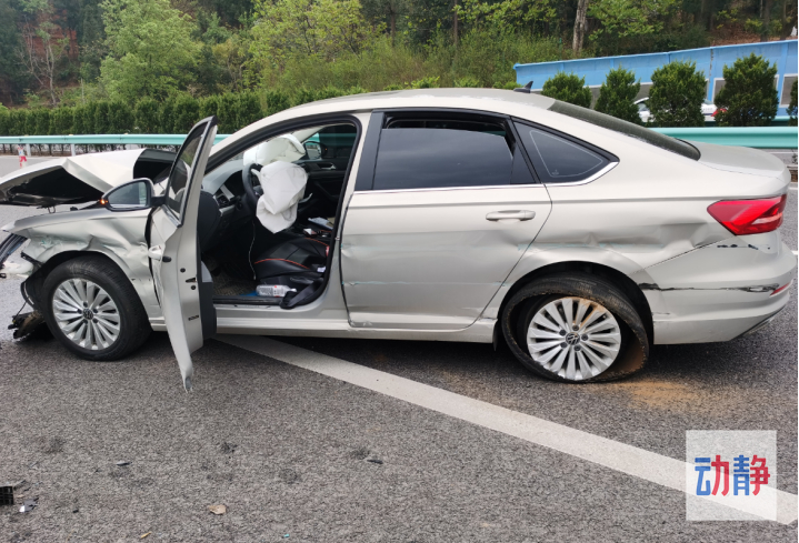 据驾驶员杨某介绍,他当时车辆时速为120公里,在行经事发路段时,突然感到车身往右下沉,随即就失去了对车辆的控制,车辆先刮擦了中央护栏,然后又撞到了边上的护栏,安全气囊弹开,所幸安全带将他紧紧地固定在座椅上,才没有受伤。