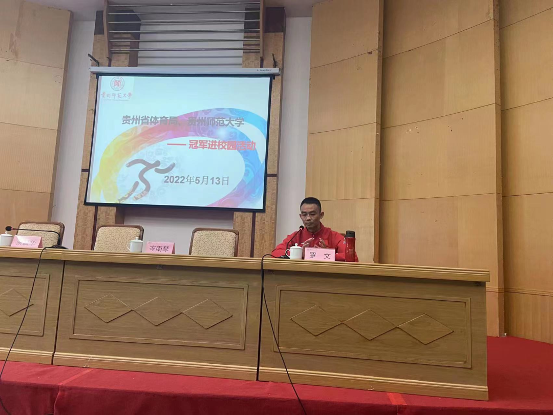 为贯彻落实《关于深化体教融合促进青少年健康发展的实施意见》《贵州省竞技体育“十四五”发展规划》,大力弘扬奥林匹克精神,深入传播体育文化,通过讲述冠军故事和开展体育指导志愿服务,引导更多青年学子关注体育、参与体育,积极参加体育锻炼,以更强健的体魄,去追逐青春梦想。5月13日,贵州省体育局竞体处、局团委与贵州师范大学体育学院组织开展冠军进校园志愿服务活动。