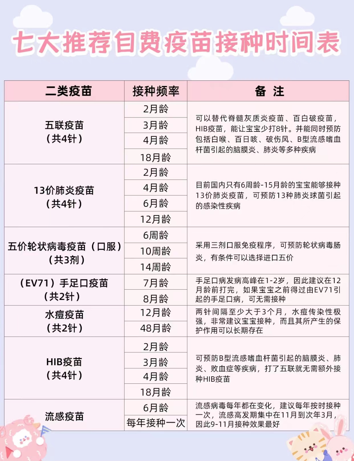 ✦ 疫苗间隔时间不能缩短。如果生病,疫苗时间可顺延推迟,但是一定不能提前,要大于之前所说的间隔时间。不过建议加强版不要拖太久,宝宝年龄越大,不良反应会越大。