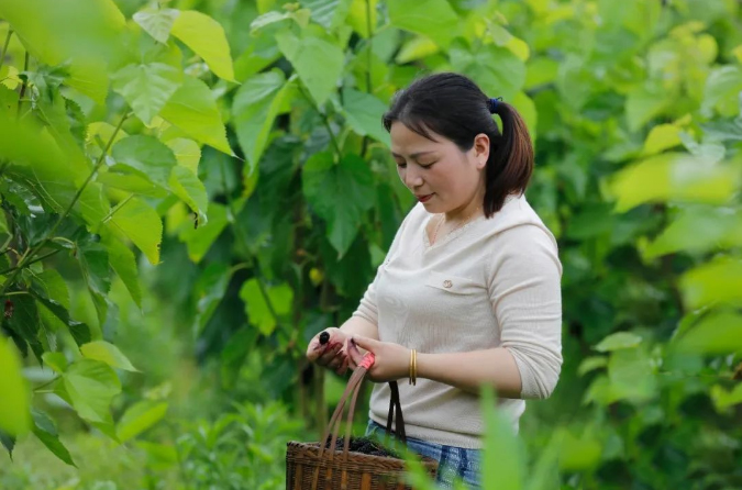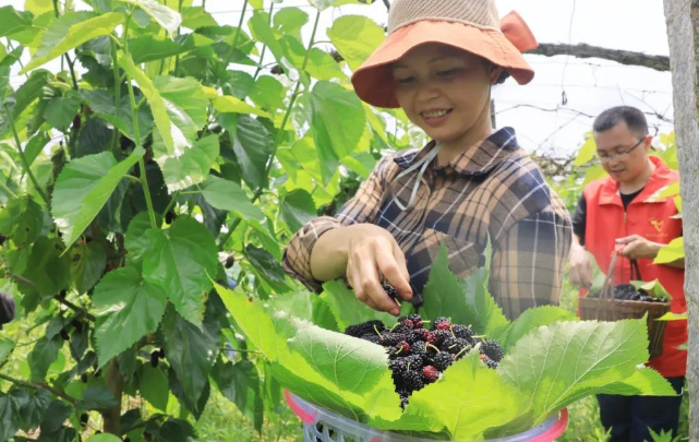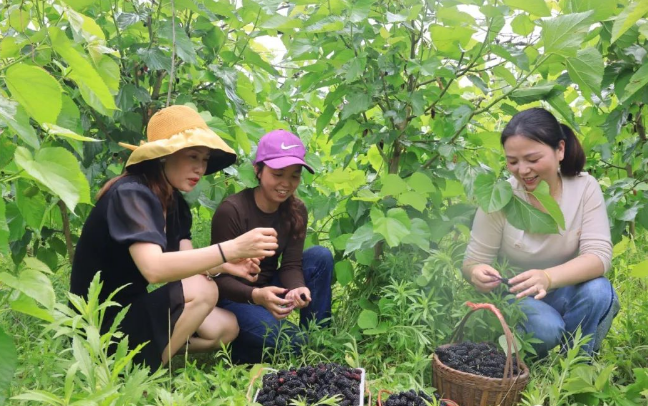 “桑葚园的桑葚熟了,我约上几个好姐妹我们一起来采摘桑葚,这里的桑葚又大又甜又好吃”。游客石女士开心的说道。
