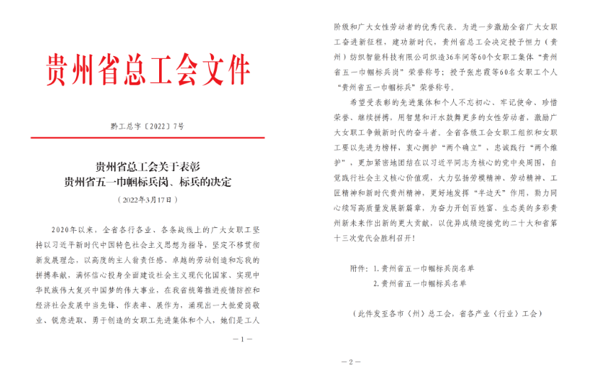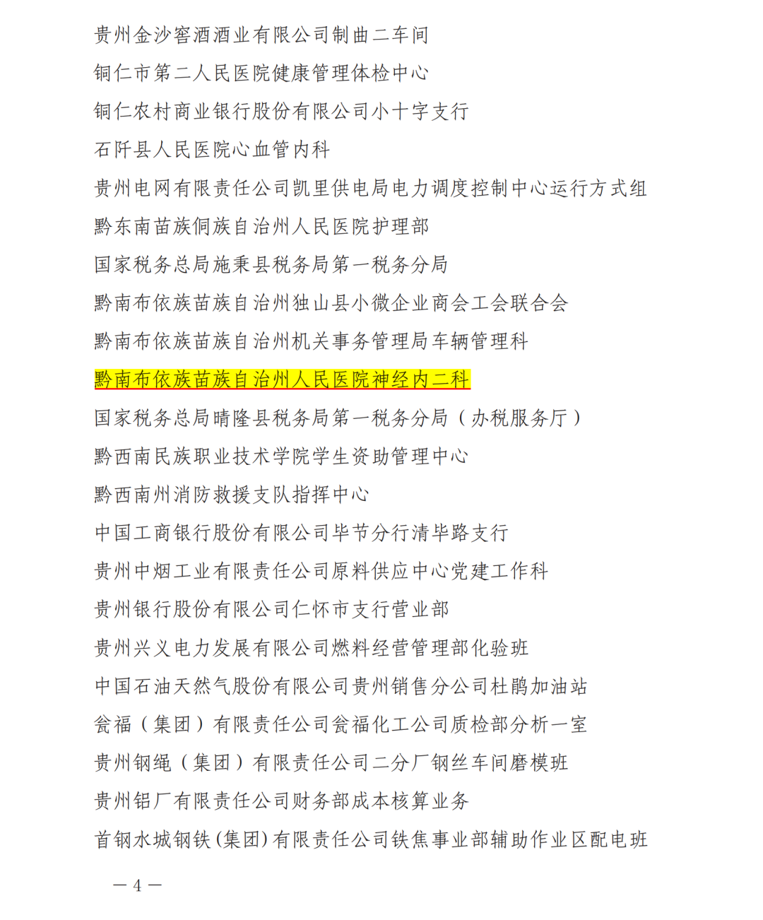 近期,在省总工会第七届女职工委员会第三次全委(扩大)会议上,省总工会表彰了一批女职工先进集体和个人。其中,黔南州人民医院神经内二科荣获“贵州省五一巾帼标兵岗”荣誉称号。