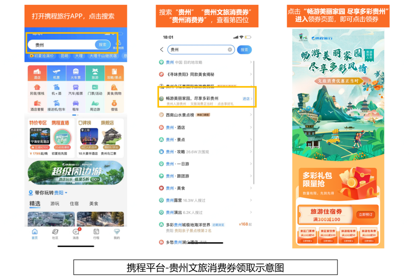 本次文旅消费券在携程平台核销时间截止5月25日00:00,“贵州旅游·一码游贵州”小程序核销时间截止5月24日00:00。逾期作废,不可转赠或兑换现金。同一用户(即同一UID)每批次仅限领取各类消费券各1张,单笔消费可使用一张,不可叠加使用,已领取但未在有效期内使用的券码过期作废。