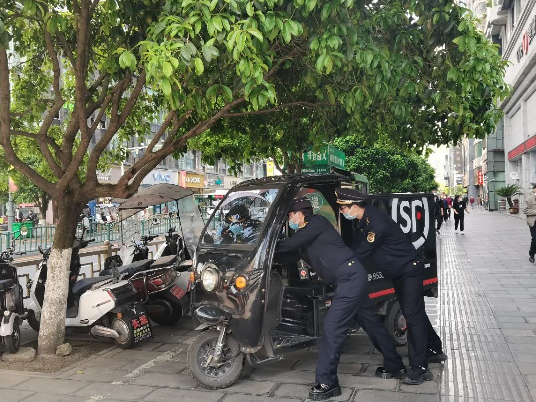 巡查中,执法人员秉承发现一起、处置一起原则,通过立即清理、劝戒车主、提醒行人等方式,全面梳理整治盲道被占用情况。