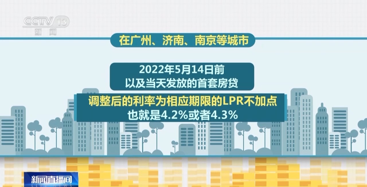 据了解,由于政策的调整,多家银行将存量首套房贷利率的调整分成了不同阶段。在广州、济南、南京等城市,2022年5月14日前以及当天发放的首套房贷,调整后的利率为相应期限的LPR不加点,也就是4.2%或者4.3%;2022年5月15日及以后发放的首套房贷,调整后的利率为相应期限的LPR-20个基点,也就是4.0%或4.1%。