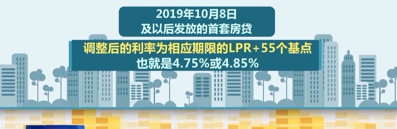 在北京等城市,2019年10月8日以前发放的首套房贷,调整后的利率为相应期限的LPR不加点,也就是4.2%或者4.3%;2019年10月8日及以后发放的首套房贷,调整后的利率为相应期限的LPR+55个基点,也就是4.75%或4.85%。