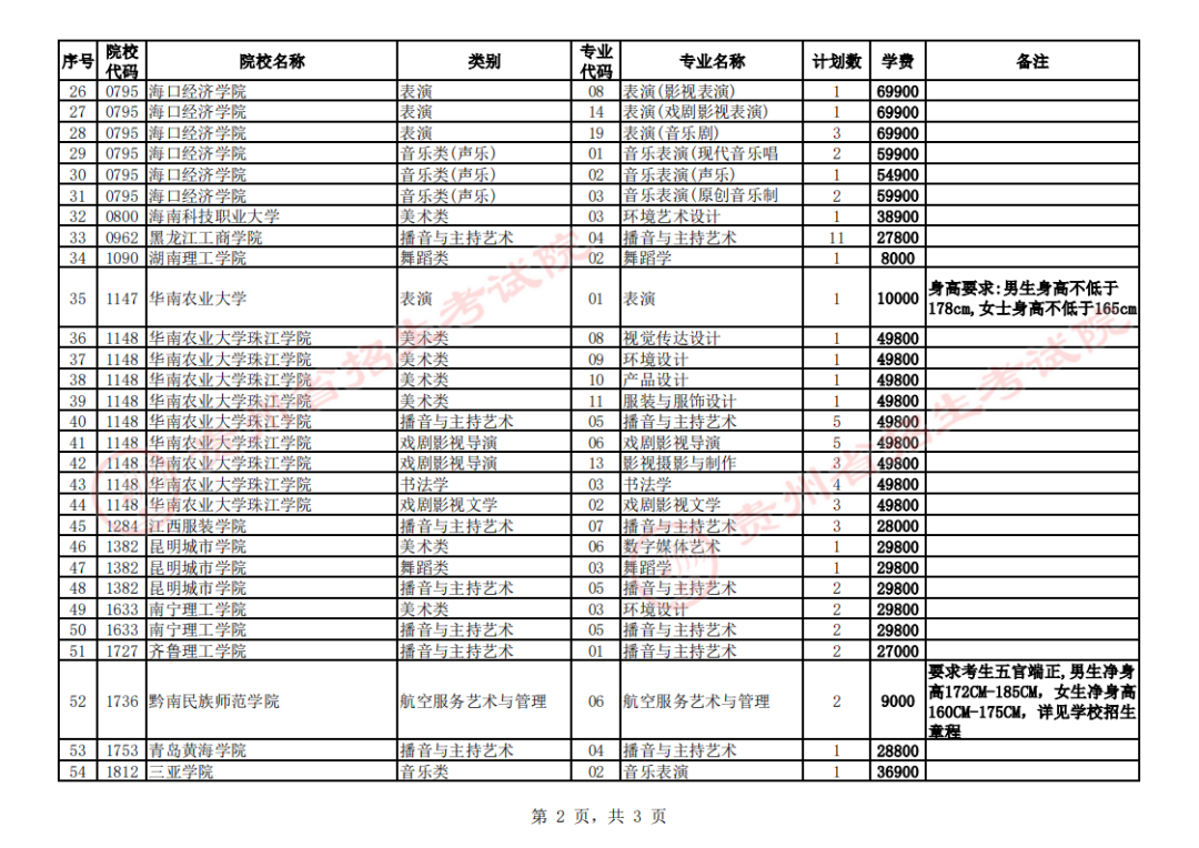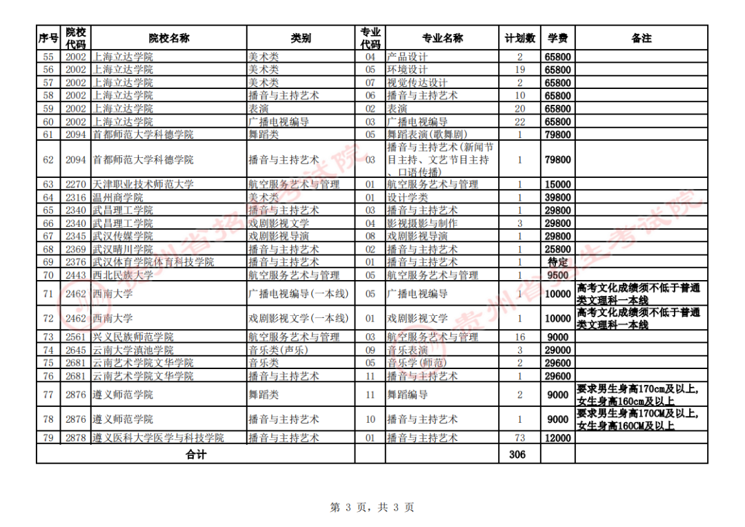 贵州省2023年普通高校招生艺术类平行志愿本科院校第2次征集志愿说明