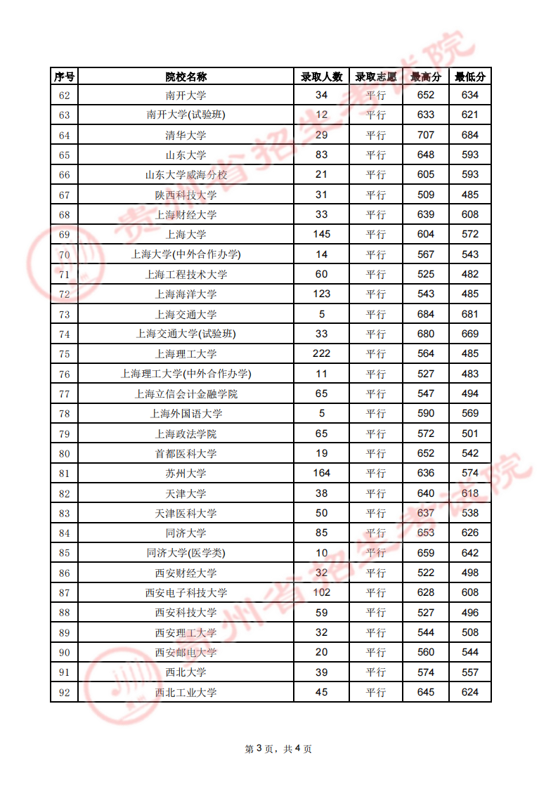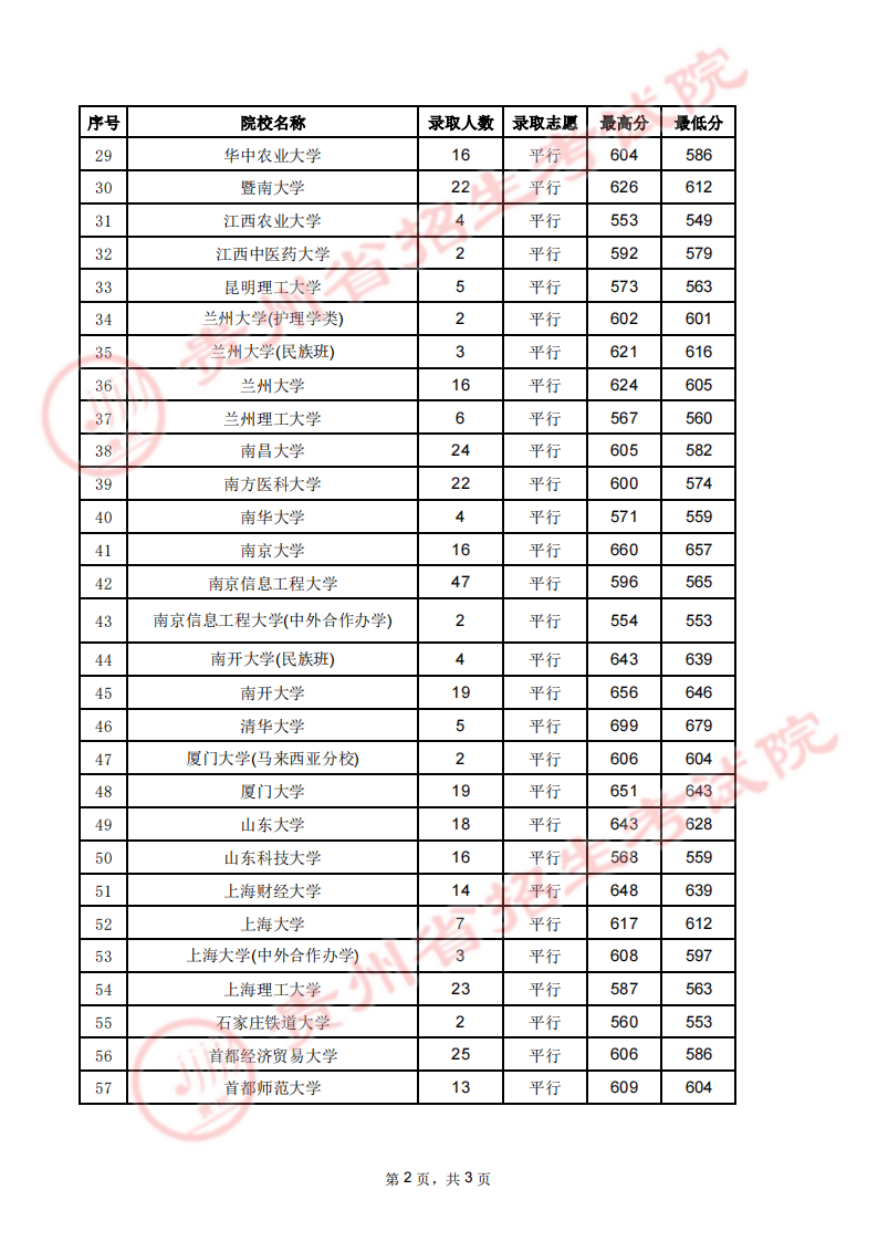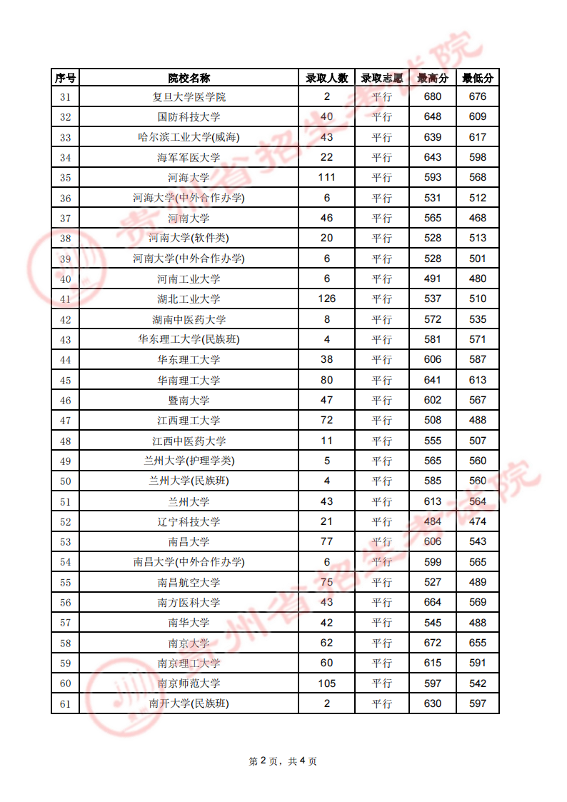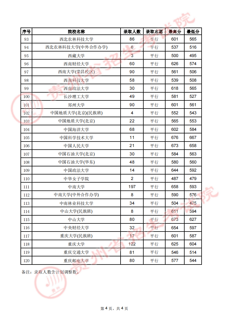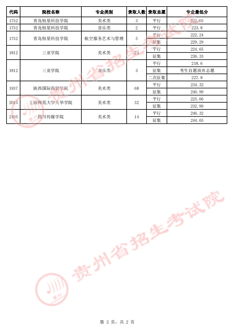 贵州省2023年高考第一批本科院校第2次征集志愿平行档情况