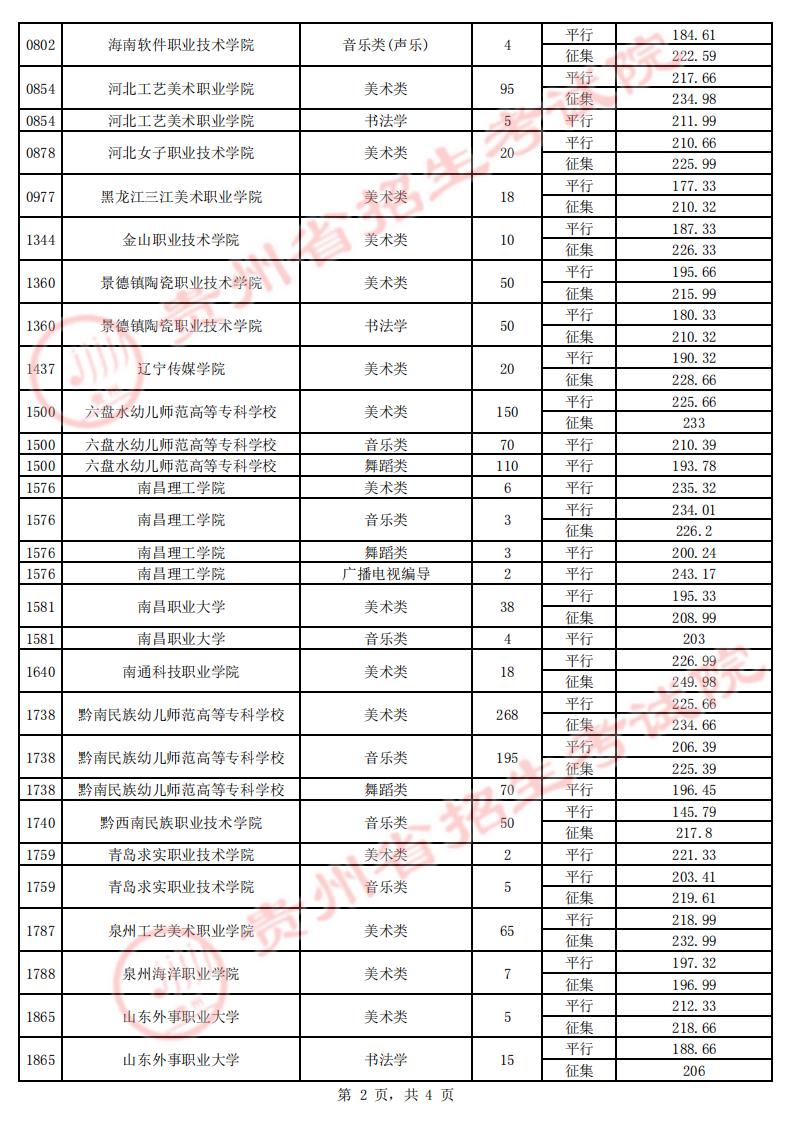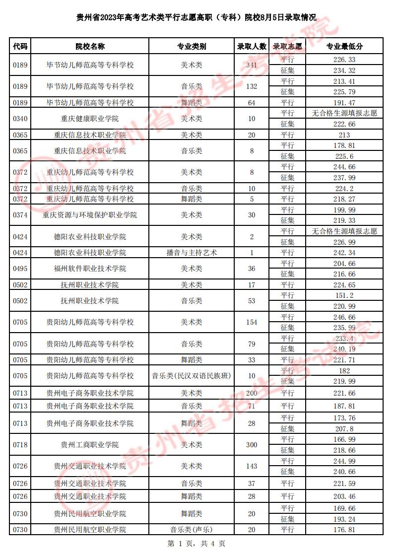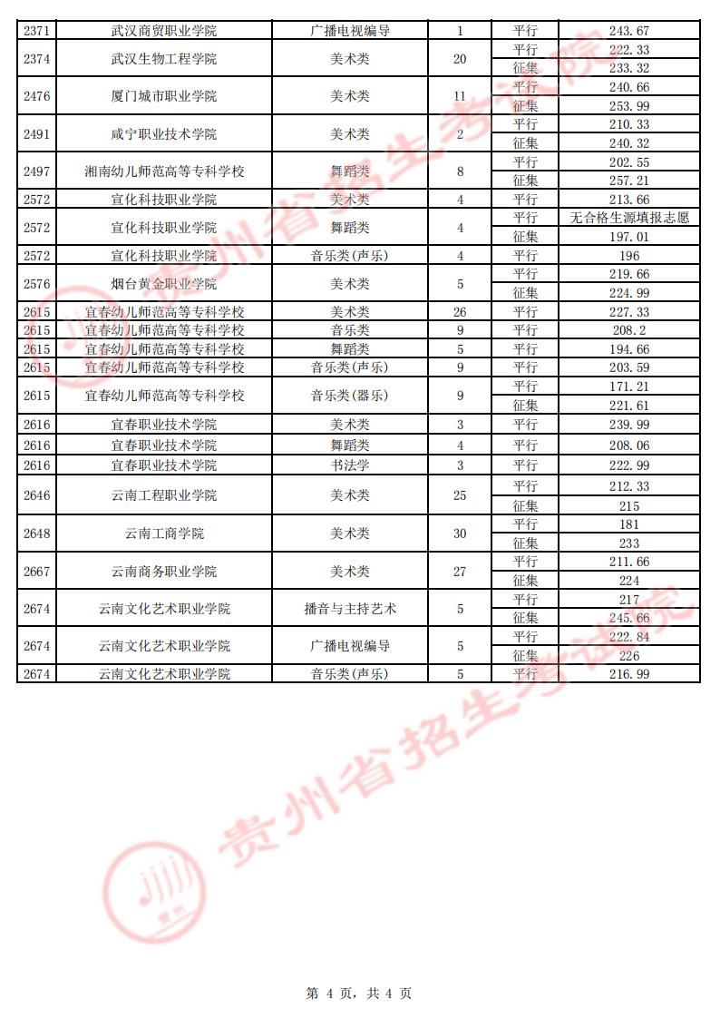 贵州省2023年高考体育类高职(专科)第3次征集志愿投档情况